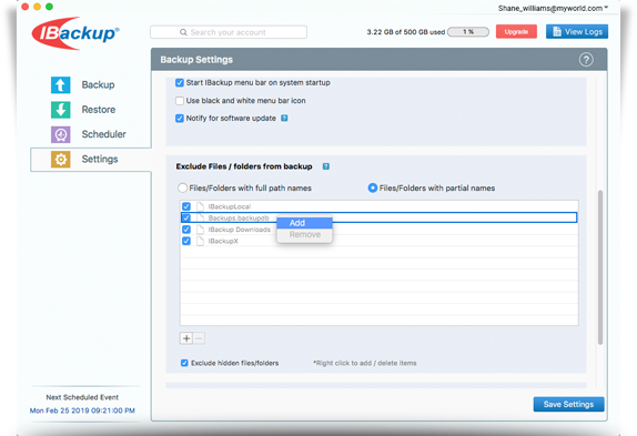 However, if you have selected all required files/folders that needs to be backed up from your Mac then there is no need to backup Time Machine data again as it will duplicate the backup data on your IBackup account. To avoid this duplicate copy, by default IBackup will exclude Time Machine data ('Backups.backupdb') folder from your backup.