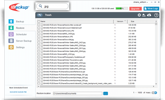 You can locate any file/folder present in your IBackup account using the Search feature.